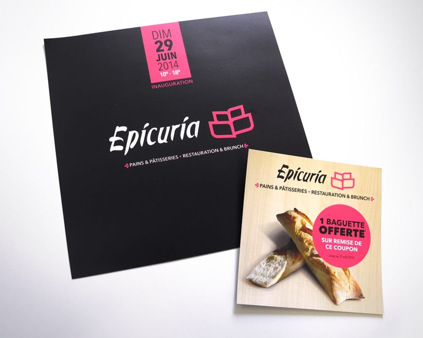 Pour communiquer efficacement sur ce nouveau positionnement, EPICURIA a sollicité l’agence pour la mise en place d’actions de communication répondant aux objectifs de cette nouvelle structure : le logo de l’enseigne a été décliné (mais s’inspire du logo-mère pour garder toute sa cohérence), la vitrine du lieu dispose d’une décoration sur-mesure, la papeterie a été pensée aux formes de la nouvelle identité et les affiches présentant les nouveaux produits et services répondent aux exigences de la nouvelle charte graphique (cartes des vins, des pains et pintxos).