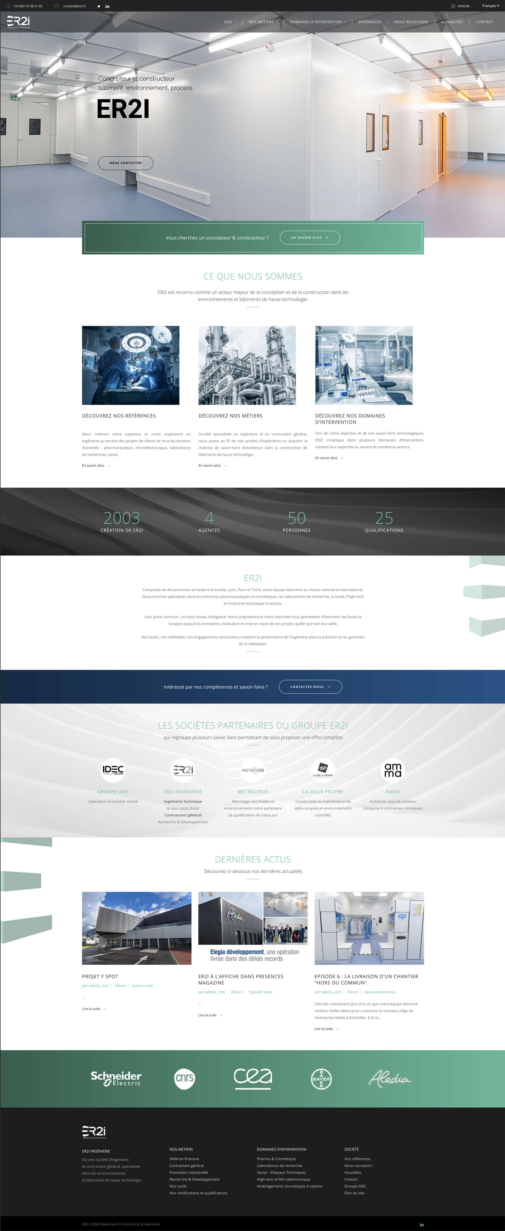 Notre agence de communication a de nouveau collaboré avec ER2I, entreprise spécialisée dans l’ingénierie, la conception et la construction de bâtiments industriels et salles blanches, dans la refonte de son site web. Nous avions déjà eu le plaisir de réaliser une première fois leur site internet, avant que ces derniers décident de réitérer leur confiance en FX, notamment pour la réalisation d’un site internet corporate.
